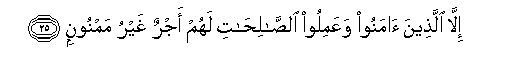 Save those who believe and do righteous good deeds, for them is a reward that will never come to an end (i.e. Paradise).